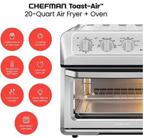 • FAMILY SIZE: Thoughtfully designed to cook for a crowd, the spacious 20-quart capacity fits four slices of toast, a 10-inch pizza, or a whole 5.5lb chicken