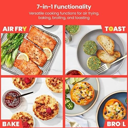 • MULTIFUNCTIONAL: Now you can air fry, bake, broil, convection bake, convection broil, toast, and warm, all in one great-looking, space-saving toaster oven air fryer combo