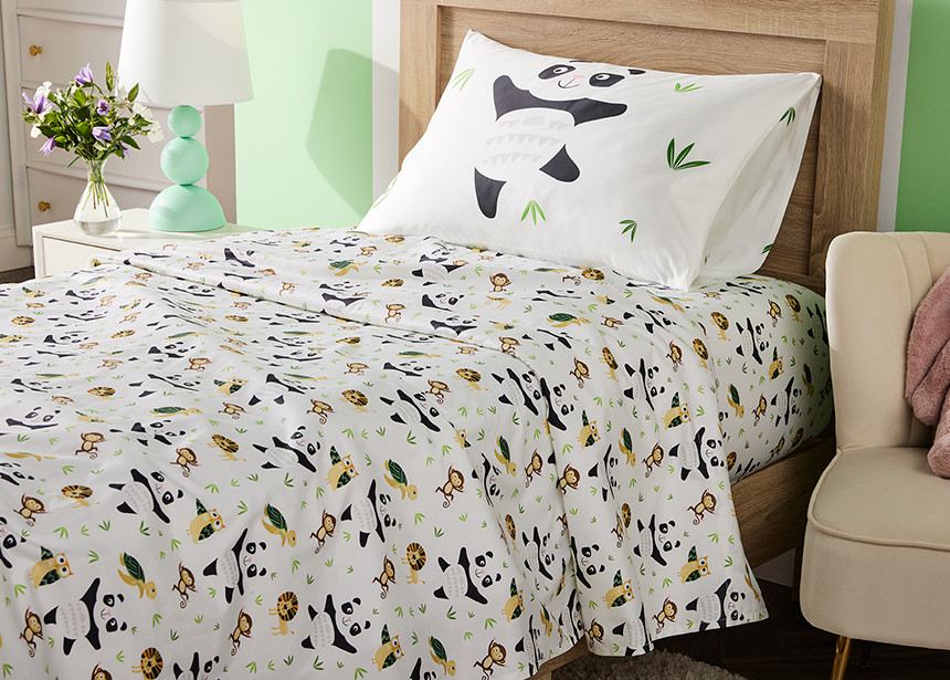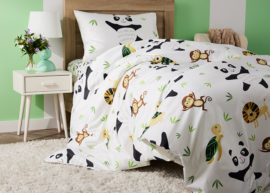 Featuring MiniMO the panda and his group of friends, the cartoon children's three-piece set shows Mandarin Oriental's care for young fans. This delightful sleep set includes a down duvet cover, a fitted sheet, and a pillowcase, all made of 100% cotton, providing your little one with exceptional comfort as they drift off to sleep.