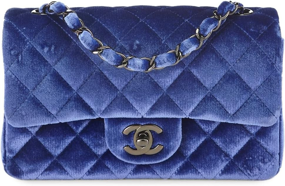 Chanel Navy Blue Velvet Rectangular Flap Mini Bag