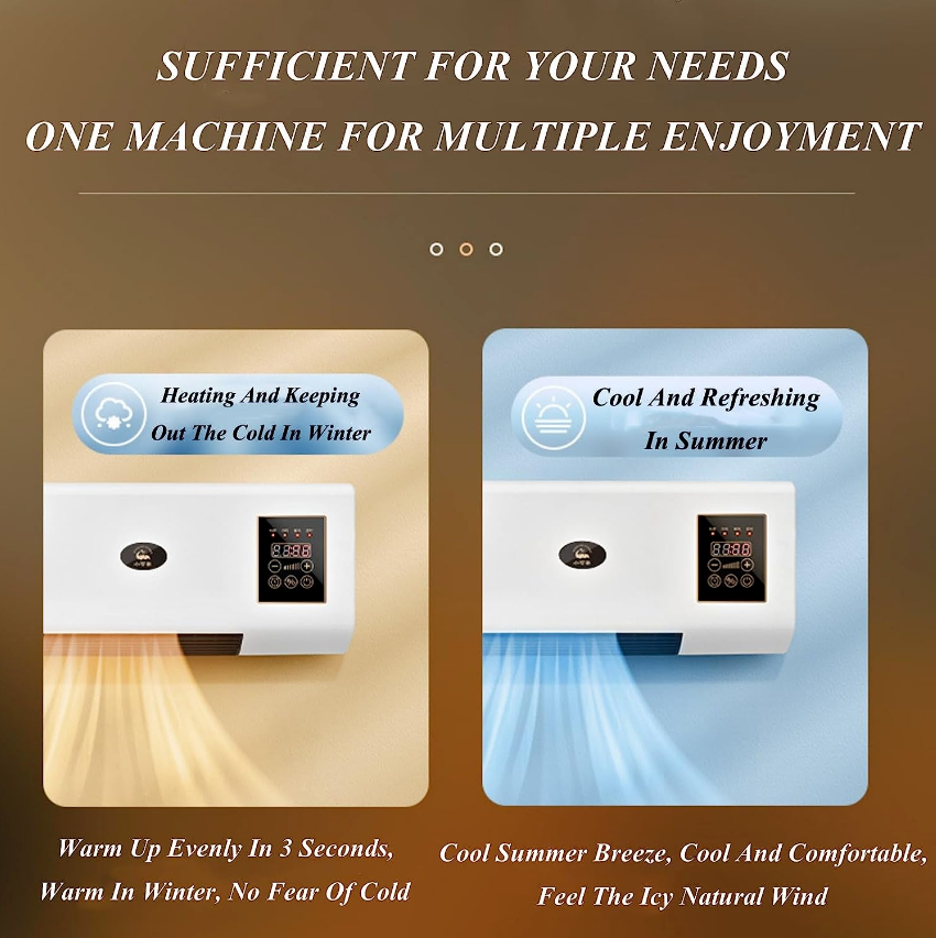 • 【MULTI-FUNCTIONAL DESIGN】The wall unit air conditioner can be used not only as an air conditioner for cooling (natural wind) but also as a heater for heating to meet the needs of different seasons. Note: This product can not be cooled, blowing natural wind and hot air.