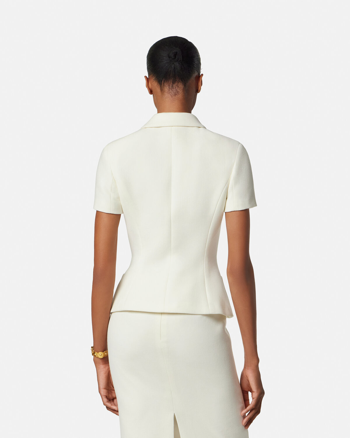 Tailored short-sleeved double-breasted jacket with Medusa buttons, the silhouette is slim and elegant, and the shoulder lines are crisp and stylish.