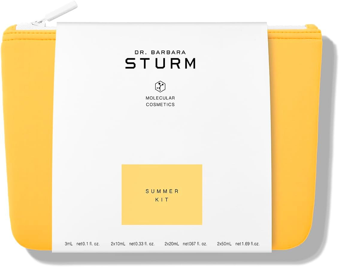 describe Dr. Barbara Sturm's brand-new summer skin care package contains seven steps, aiming to help skin keep moist, healthy and radiant in warm months. Dr. Barbara Sturm's brand-new 2022 summer skin care package contains many key products to help you keep your skin moist, healthy and radiant in warm months. The whole 7-step skin care process is packed in a reusable yellow neoprene bag, which is part of the transformation from Dr. Sturm to sustainable packaging. Mask, hyaluronic acid essence, soothing essence, cream, SPF50 sunscreen lotion, moisturizing spray and aloe gel are available in formal clothes, luxury clothes and mini clothes. Summer suit can protect your skin from UVA and UVB rays, and help relieve oxidative damage and other stress caused by sun exposure.