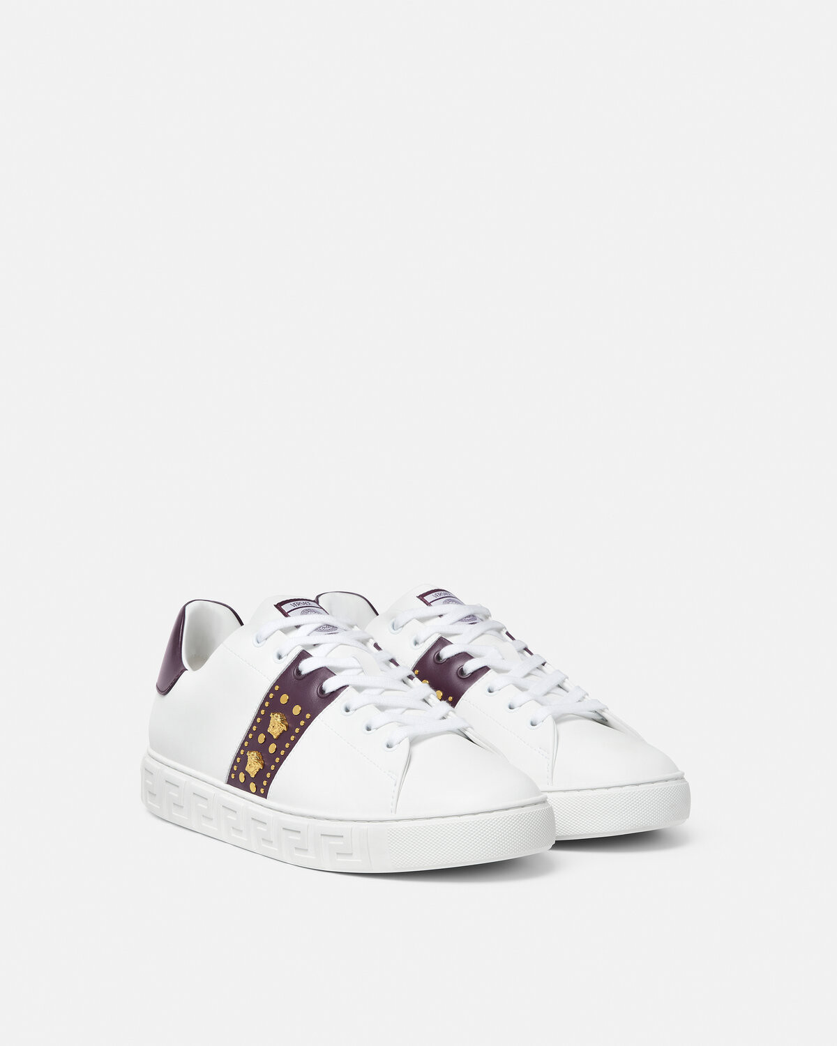 This low-cut sneaker features a Greca pattern carved on the sole, and the upper is decorated with rivets and embellished with Medusa accessories. The back side is decorated with Versace Logo stamp. Greca sports shoes are made of environmentally-friendly materials certified by recycled ingredients or/and derived from renewable raw materials.