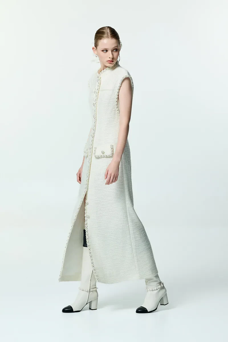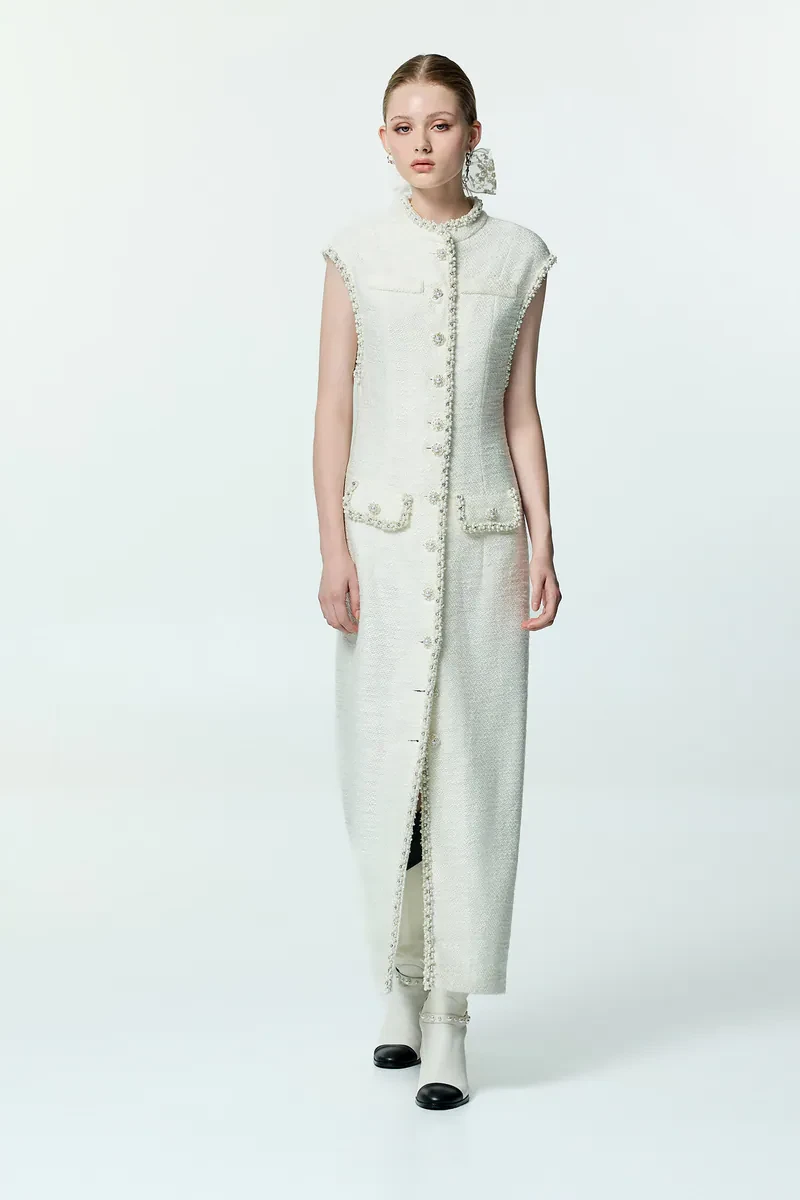 Handmade Pearl Diamond Ornament Tweed Yarn Dress-style Dress