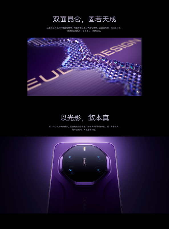 50-megapixel ultra-high dynamic camera (F1.4~F4.0 aperture, OIS optical image stabilization, RYYB sensor)+40-megapixel ultra-wide-angle camera (F2.2 aperture, RYYB sensor)+50-megapixel ultra-concentrated macro telephoto camera (F2.1 aperture, OIS optical image stabilization, RYYB sensor)+50-megapixel ultra-telephoto camera (F3.2 aperture)