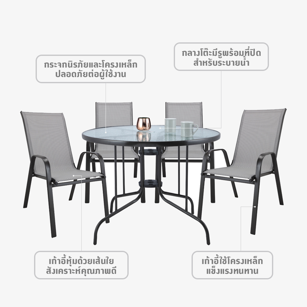 INDEX LIVING MALL ชุดโต๊ะสนาม 4 ที่นั่ง รุ่นสแตมป้า - สีกาแฟ
