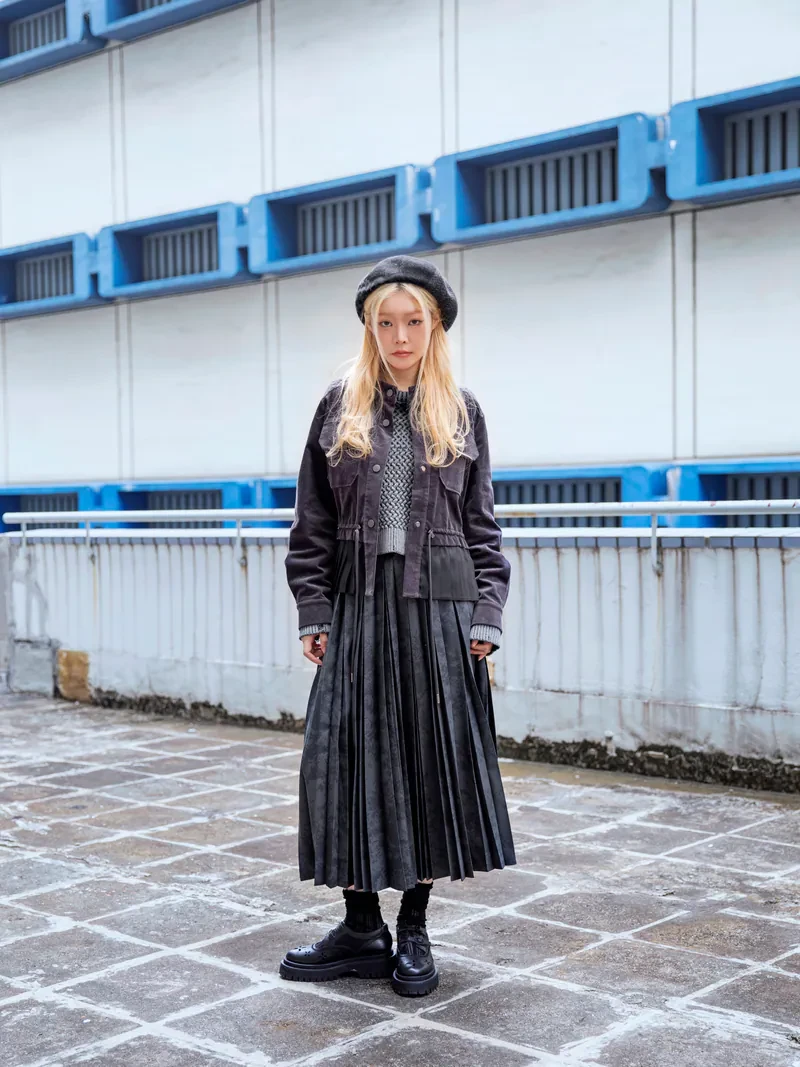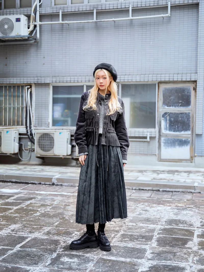 Knitted patchwork washing corduroy jacket-25WRJ209U