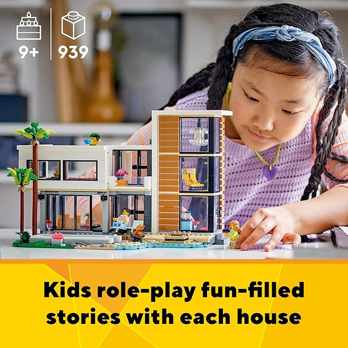 A 3-in-1 LEGO Creator Toy House Collection—The LEGO Creator Modern House Play Set allows boys and girls ages 9 and up to build and rebuild 3 different detailed model houses with the same set of bricks.