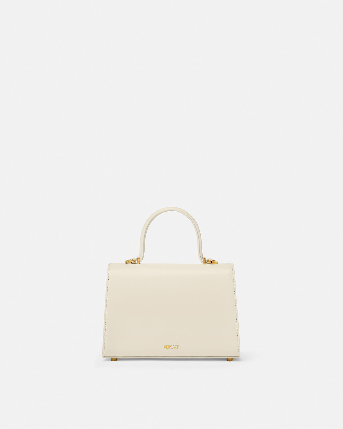 Small handbag, made of smooth grain plain leather with decorative details, decorated with Medusa '95 hardware accessories-the iconic brand element that first appeared in 1995 series. The style adopts the top handle design, the flip magnetic buckle is closed, and the detachable diagonal shoulder strap is equipped.