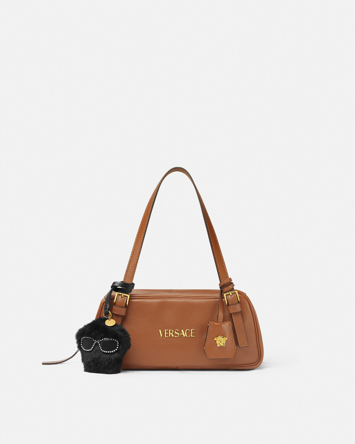 Small key chain, made of wool and Napa leather, adopts the iconic Medusa shape, and wears Medusa Biggie sunglasses, adding a touch of playful and personalized charm to daily bags.
