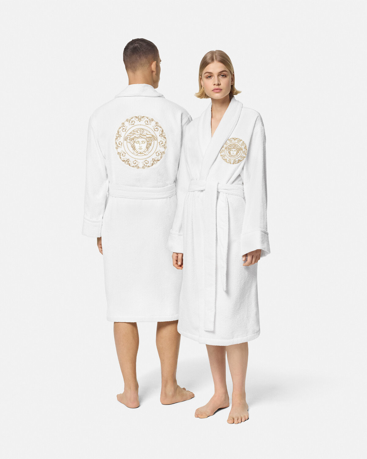 This bathrobe is made of soft cotton and linen towel fabric, and Medusa Gala embroidery is decorated on the chest and back.