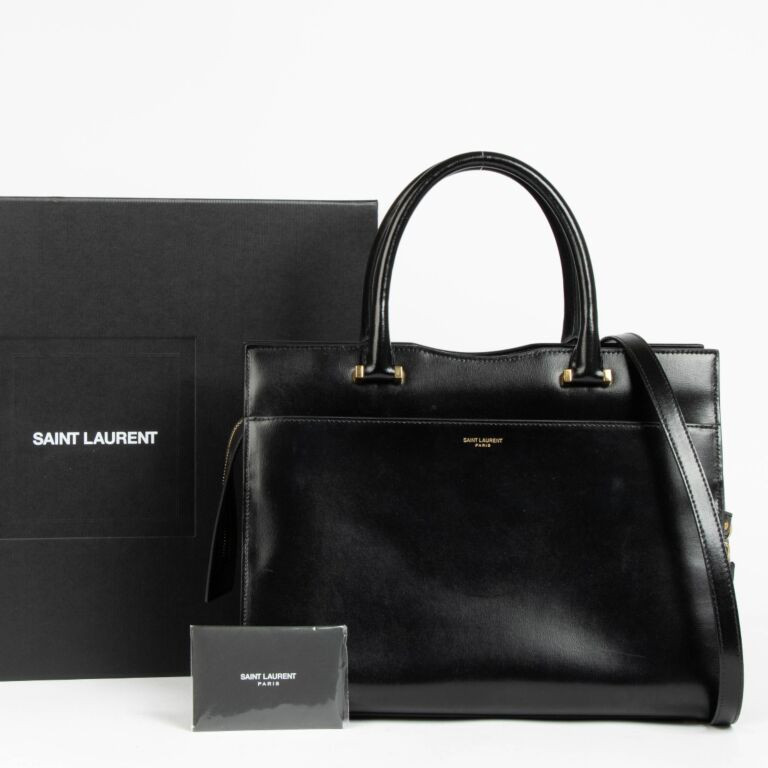 Sophisticated and timeless, the Saint Laurent Black Box Leather Uptown Medium Bag embodies the sleek Parisian refinement of Saint Laurent. Crafted from smooth, structured box leather, this elegant top-handle and shoulder style features clean lines, a refined silhouette, and the signature minimalistic Uptown aesthetic. Perfect for both day and evening, it adds an instant touch of polished luxury to any look.