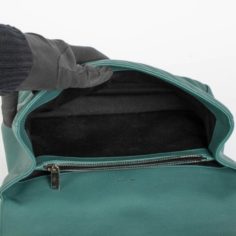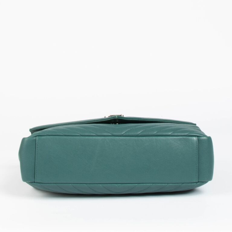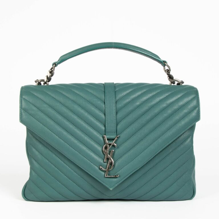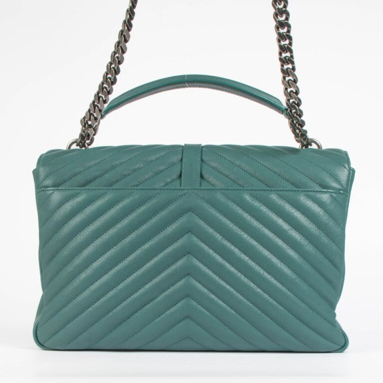 Chic and contemporary, the Saint Laurent Green Leather Large College Bag blends modern elegance with iconic Parisian edge. Crafted from supple quilted leather and finished with the signature YSL monogram and chain strap, this statement piece offers both structure and versatility. Its rich green hue adds a bold yet sophisticated touch to any outfit, perfect for day-to-night styling