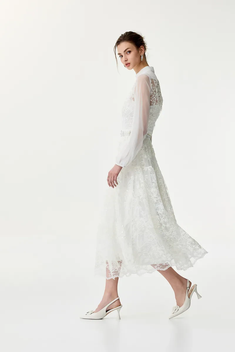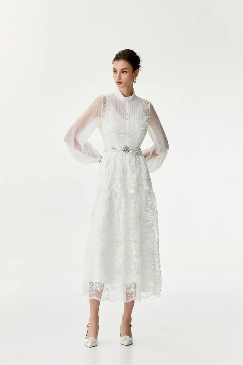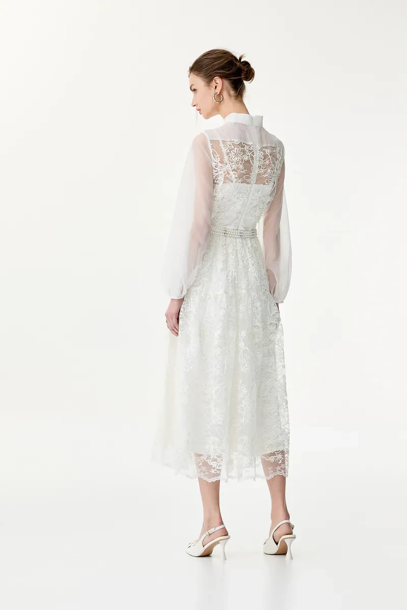 Three-dimensional lace flower dress long dress