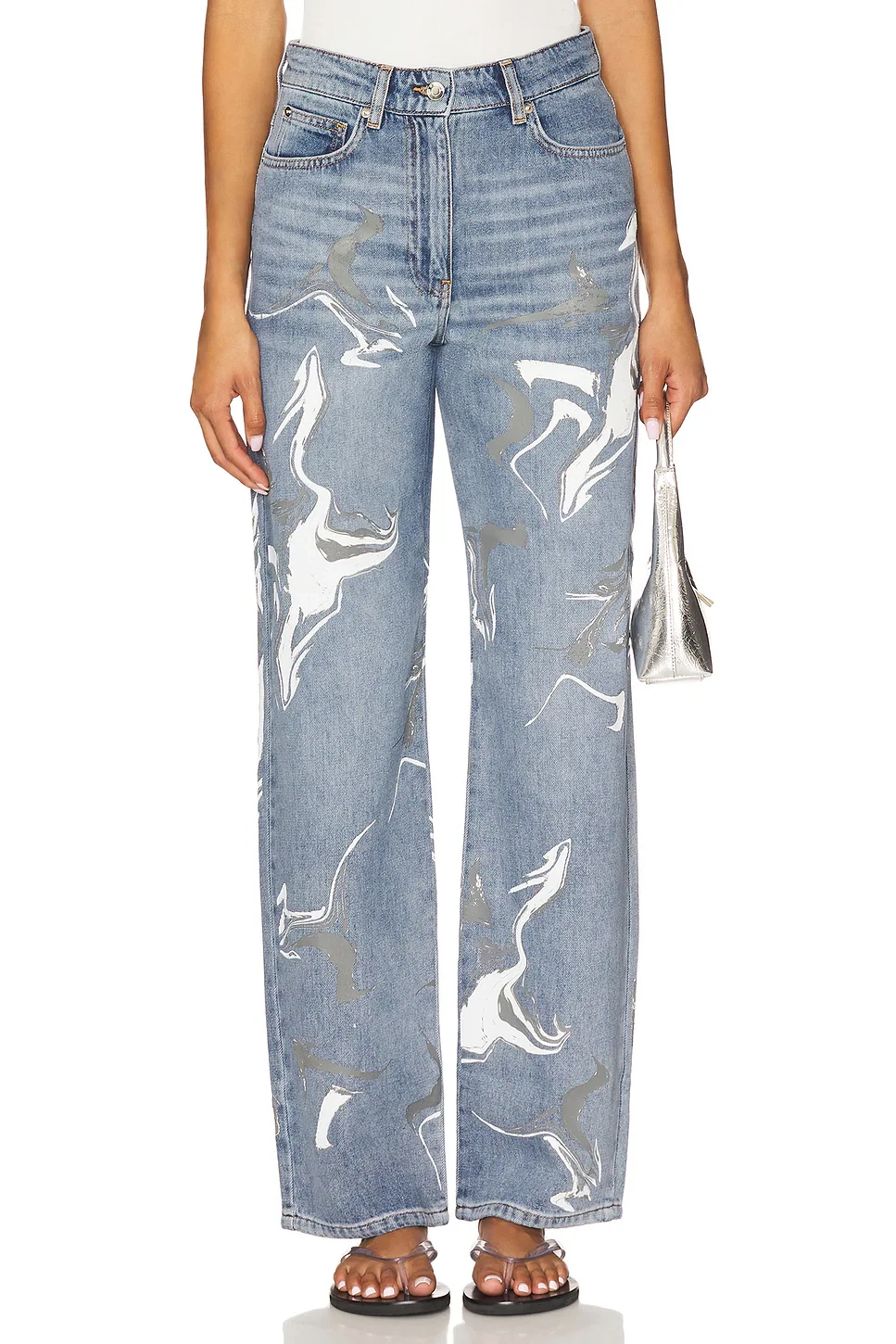 • Structured denim fabric with screen printed design throughout