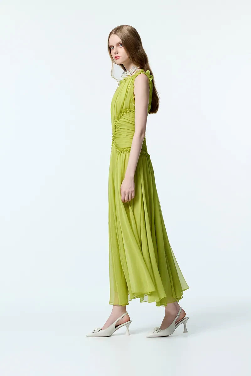 White grape green chiffon dress long dress