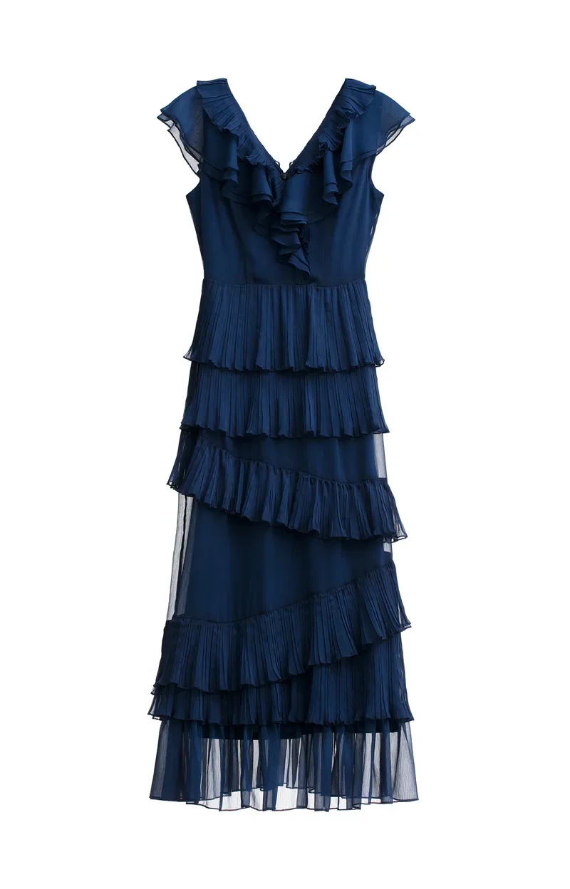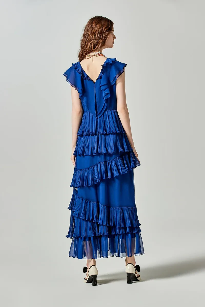 Yinhe cobalt blue lotus leaf formal attire dress